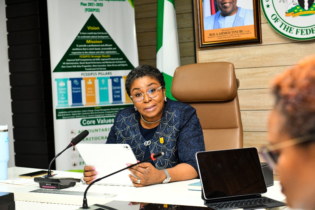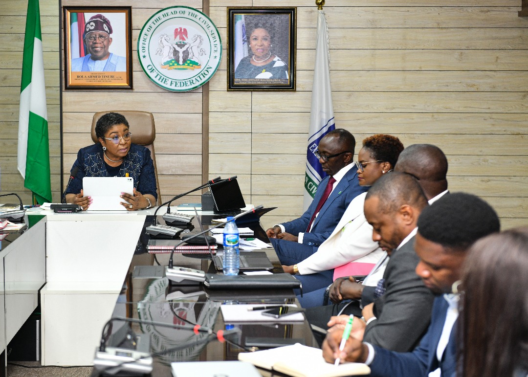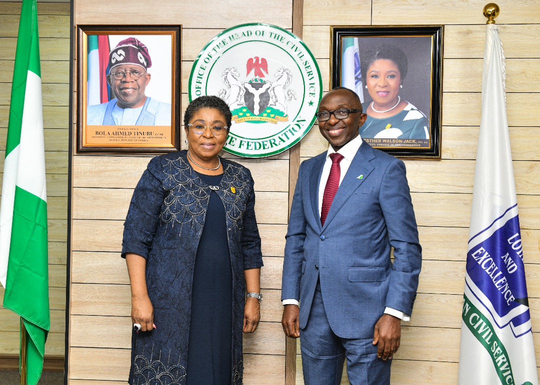 The Head of the Civil Service of the Federation (HCSF), Mrs. Didi Esther Walson-Jack, OON, mni, on Thursday, 25th September 2025, received in her office a delegation from the Ministry of Finance Incorporated (MOFI), led by the Managing Director/Chief Executive Officer, Dr. Armstrong Takang. The courtesy visit provided an opportunity to explore areas of mutual collaboration and benefit between the two institutions.